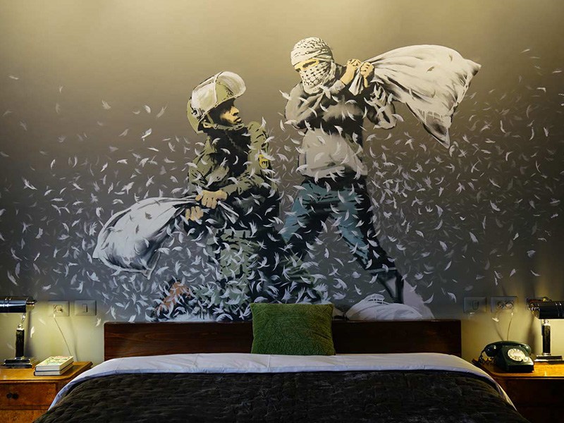 Ο καλλιτέχνης αυτός κατάφερε να μετατρέψει ένα ξενοδοχείο σε ένα μουσείο τέχνης που αγγίζει τον επισκέπτη και τον ευαισθητοποιεί. Στην πραγματικότητα δεν είναι ένα κλασικό ξενοδοχείο, αφού σε καμία περίπτωση δεν προσφέρει μια μαγευτική θέα, αλλά είναι ένα αντιπολεμικό ξενοδοχείο. Η θέα βλέπει κατευθείαν σε ένα ακόμη τείχος της ντροπής, που χωρίζει την Παλαιστίνη από το Ισραήλ. Είναι μόλις 9 δωματίων και η διανυκτέρευση ξεκινά από τα 30 δολάρια τη βραδιά.
