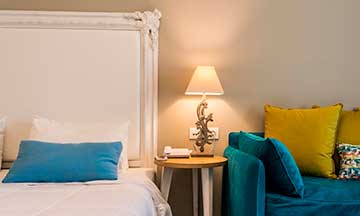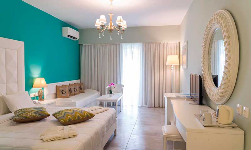 Τα δωμάτια του ξενοδοχείου έχουν ανακαινιστεί πλήρως και έχουν διακοσμηθεί με καινούργια έπιπλα σχηματίζοντας μοντέρνους και φωτεινούς χώρους με όλες τις απαραίτητες ανέσεις που χρειάζεται κάθε απαιτητικός πελάτης. Τα μπάνια έχουν εξοπλιστεί με μοντέρνα έπιπλα που αναδεικνύουν κάθε γωνιά του χώρου. Η παλέτα χρωμάτων που χρησιμοποιήθηκε στους τοίχους και τα έπιπλα είναι γήινη δημιουργώντας μια αέρινη διάθεση και αισθήσεις χαλάρωσης. Επίσης, όλα τα δωμάτια είναι εξοπλισμένα με safe boxes δωρεάν χρήσης, ατομικό σίδερο με επιφάνεια σιδερώματος και με mini bars με όλα τα απαραίτητα αναψυκτικά και ποτά.