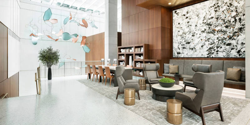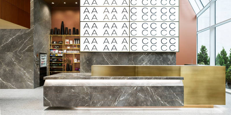 Το AC Hotel New York Times Square φέρνει τους ταξιδιώτες σε ένα από τα καλύτερα οικοδομήματα της σύγχρονης ευρωπαϊκής αρχιτεκτονικής, εμπλουτισμένο με το design της Νέας Υόρκης. Οι επισκέπτες εισάγονται στο κομψό χώρο υποδοχής μέσω μιας πλακόστρωτης πλατείας. Η σύγχρονη μεγάλη σκάλα που φτάνει ως την κορυφή και ο μεγάλος και μοναδικά φωτισμένος χώρος δημιουργούν το τέλειο σκηνικό για τα εντυπωσιακά έργα τέχνης των εγκαταστάσεων.