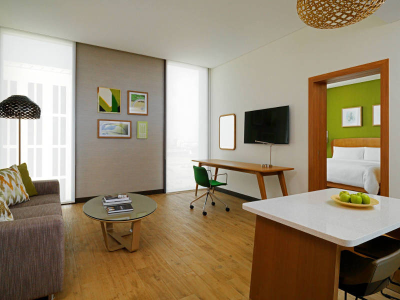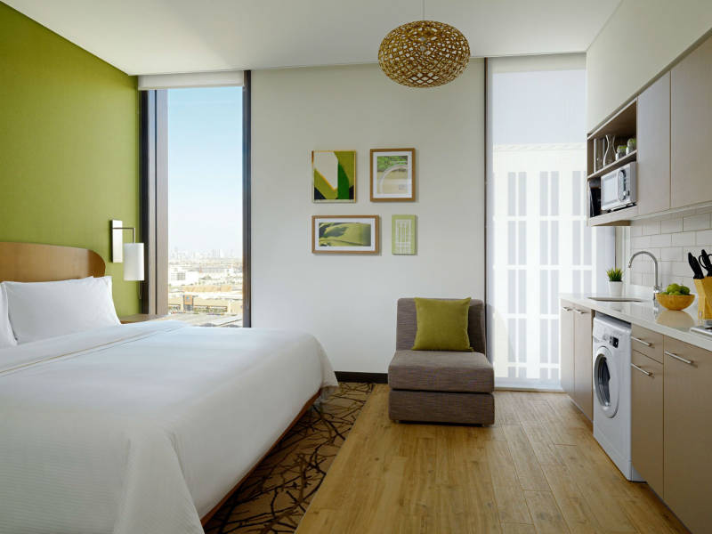 Το ξενοδοχείο διαθέτει 168 φωτεινά studios και σουίτες, με μοναδικό και χαλαρό design, πλήρως εξοπλισμένα με κουζίνα και μπάνιο εμπνευσμένο από τις υπηρεσίες spa. Επιπλέον, τα δωμάτια στο ξενοδοχείο αυτό είναι εξοπλισμένα με το SPG Keyless, το πρώτο σύστημα mobile check-in, όπου οι επισκέπτες μπορούν να χρησιμοποιήσουν τα κινητά τους τηλέφωνα ως κλειδιά δωματίου.