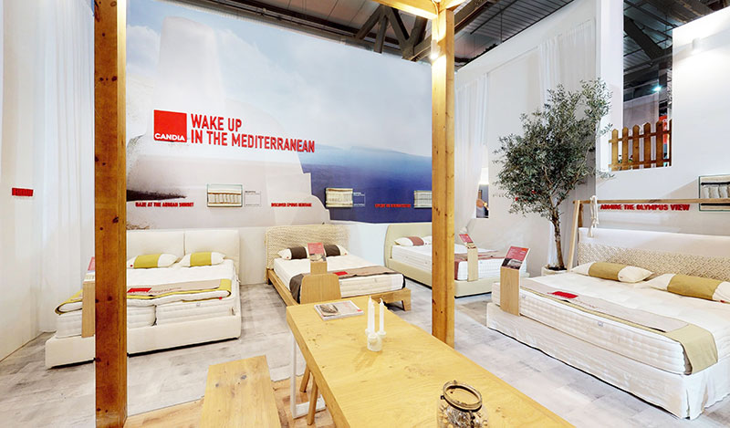 Η αφοσίωση και εμπιστοσύνη της Candia σε όσα προσφέρει ο Μεσογειακός τόπος παίρνει ζωή τόσο με την παρουσία της στην έκθεση όσο και μέσα από τα προϊόντα της. Η ίδια φιλοσοφία, ακολουθείται και στη δημιουργία των προϊόντων της, με τη μοναδική συλλογή χειροποίητων στρωμάτων BODYFIX. Τα στρώματα κατασκευάζονται από έμπειρους τεχνίτες στο χέρι σε κάθε στάδιο της παραγωγής τους με την αποκλειστική χρήση φυσικών υλικών, όπως λάδι ελιάς, βαμβάκι και τρίχα αλόγου. Σε έναν κόσμο μαζικής παραγωγής στρωμάτων, η Candia τολμά να είναι διαφορετική, με βάση την πεποίθηση ότι υπάρχει μόνο ένα τρόπος για να δημιουργηθεί ένα πραγματικό αριστούργημα: με το χέρι!