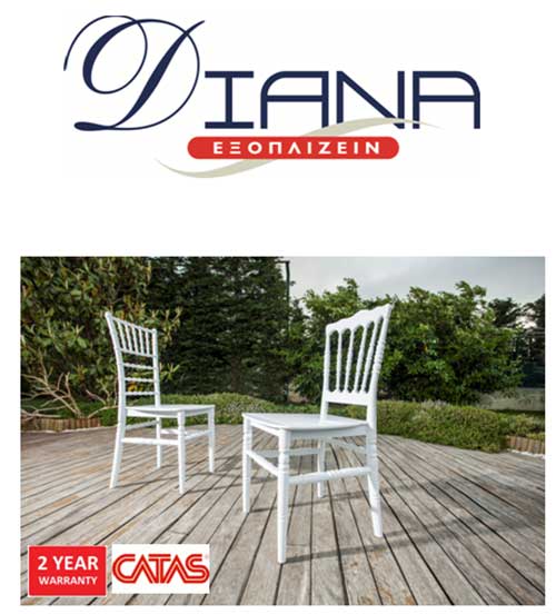 Η εταιρεία ΔΙΑΝΑ εξοπλίζειν με παράδοση στον εξοπλισμό εκδηλώσεων, παρουσιάζει νέα μοντέλα σε καρέκλες εστίασης και εκδηλώσεων, που διαθέτουν πιστοποιήση και εγγύηση για την αντοχή και την ποιότητα τους.