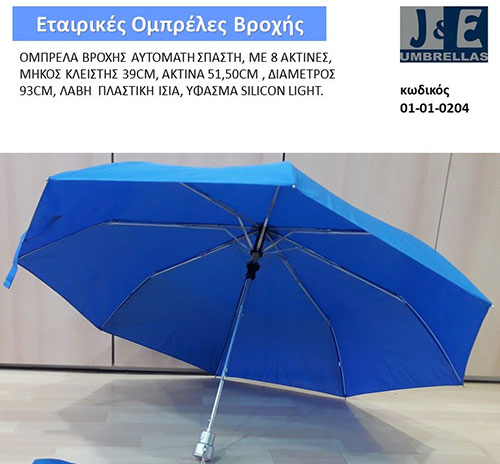 Μια από  αυτές είναι η “μικρή αυτόματη ομπρέλα” (κωδ. 01-01-0204). Είναι κατασκευασμένη από αλουμίνιο, κάτι που την καθιστά πολύ ελαφριά, ανθεκτική στον δυνατό αέρα και φυσικά μικρή, ιδανική για κάθε χωρητικότητας τσάντες.