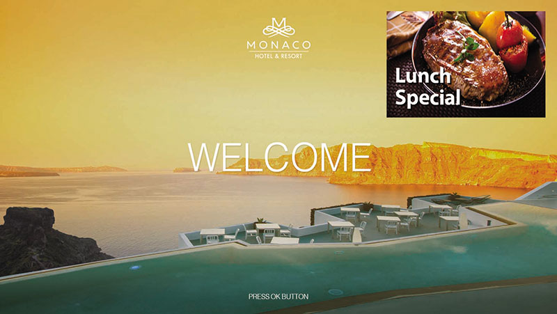 Το εύκολο στη χρήση περιβάλλον εργασίας καθώς και η διαδραστική υπηρεσία εξυπηρέτησης δωματίου προσφέρουν μια μοναδική εμπειρία στον επισκέπτη,ενώ παράλληλα η πλατφόρμα δίνει στον επαγγελματία τη δυνατότητα χρήσης σύγχρονων υπηρεσιών για τη μετάδοση μηνυμάτων (Notice, Tickerκλπ.)και εργαλείων γιατην αναπαραγωγή και την εύκολη διαχείριση περιεχομένου.